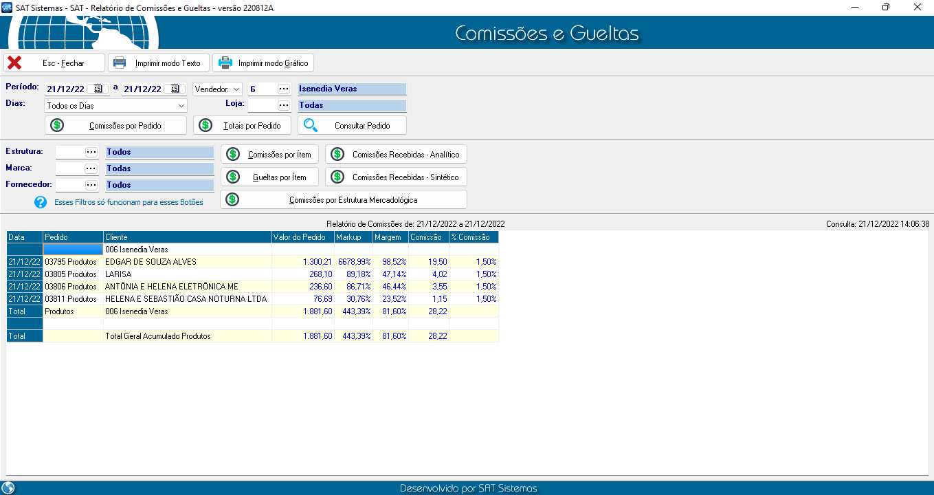 Relatório de comissões
