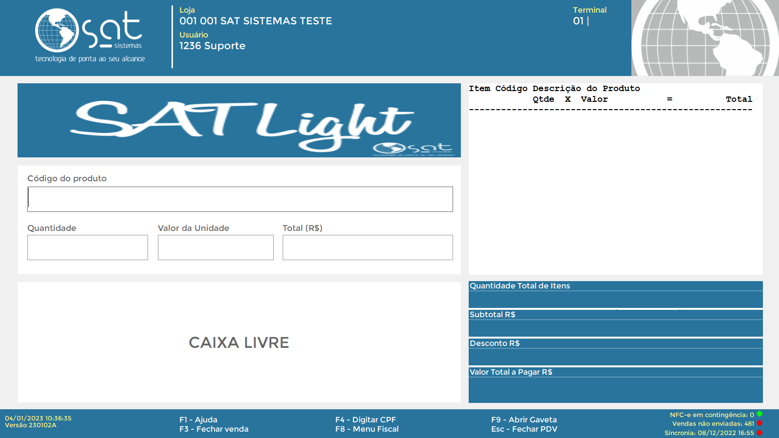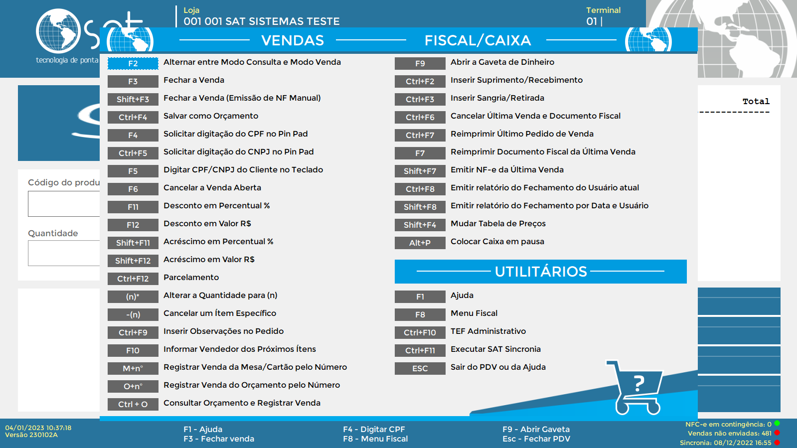 • Atalhos Fiscal/Caixa